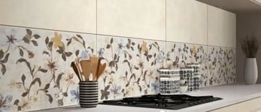Kitchen wall upto 2ft height: Basic ceramic tile Rs. 40/- per Sit